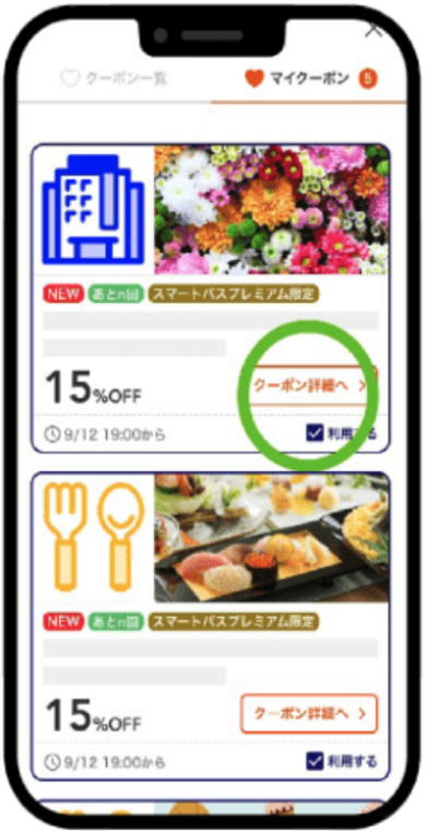 - 4等パルケエスパーニャで使える200円引きクーポン(適用条件金額:1000円以上の決済)