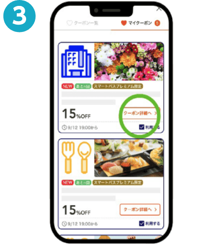 - ①利用期限までの日数が少ないクーポンが優先されます。